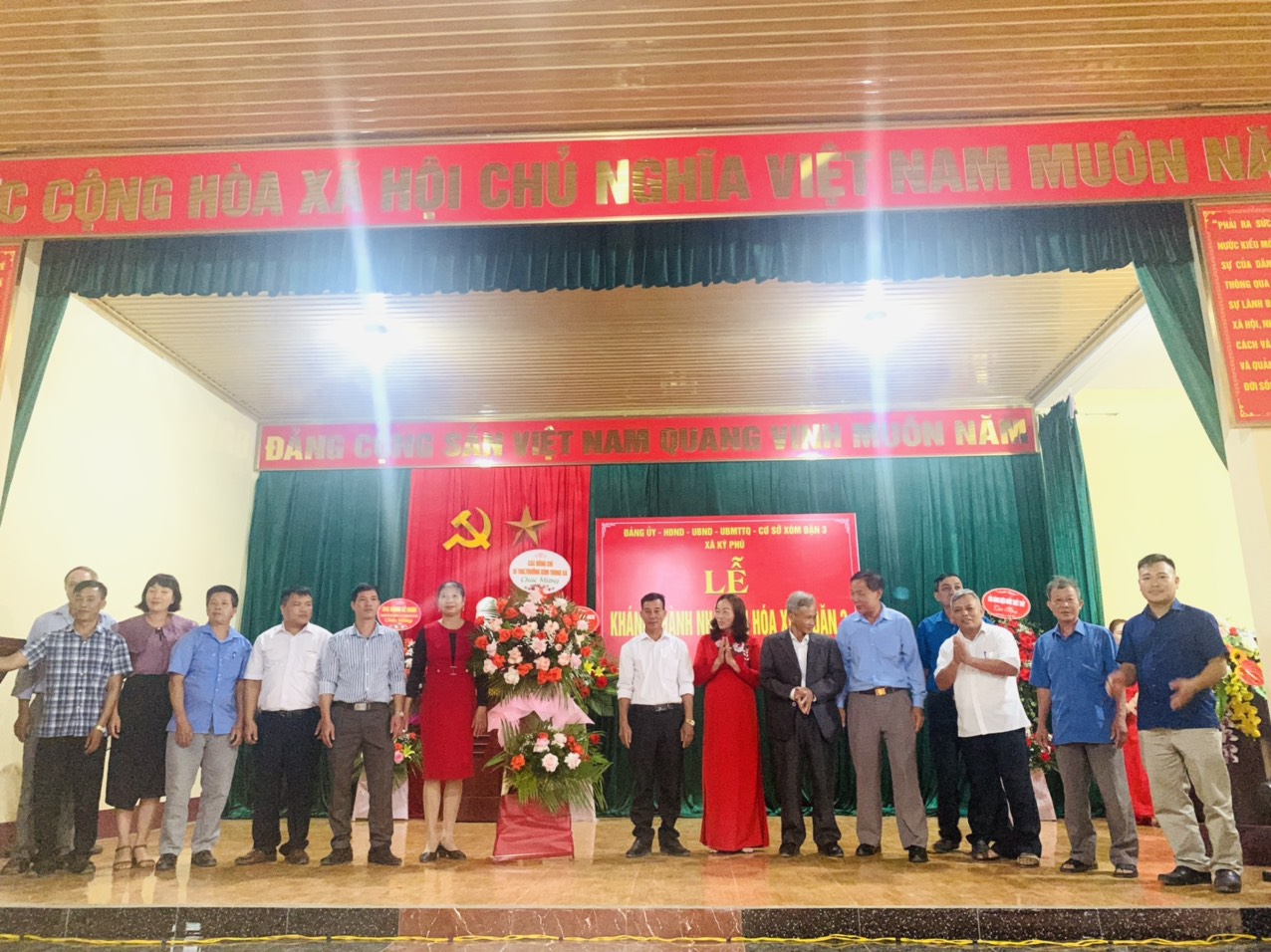 (các đồng chí Bí thư, trưởng xóm các xóm tặng hoa chức mừng CB và nhân dân xóm Đặn 3)