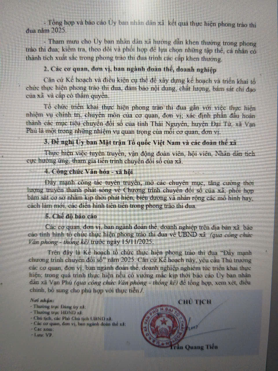 Kế hoạch phát động phong trào thi đua “Vạn Phú đẩy mạnh chương trình chuyển đổi số” năm 2025