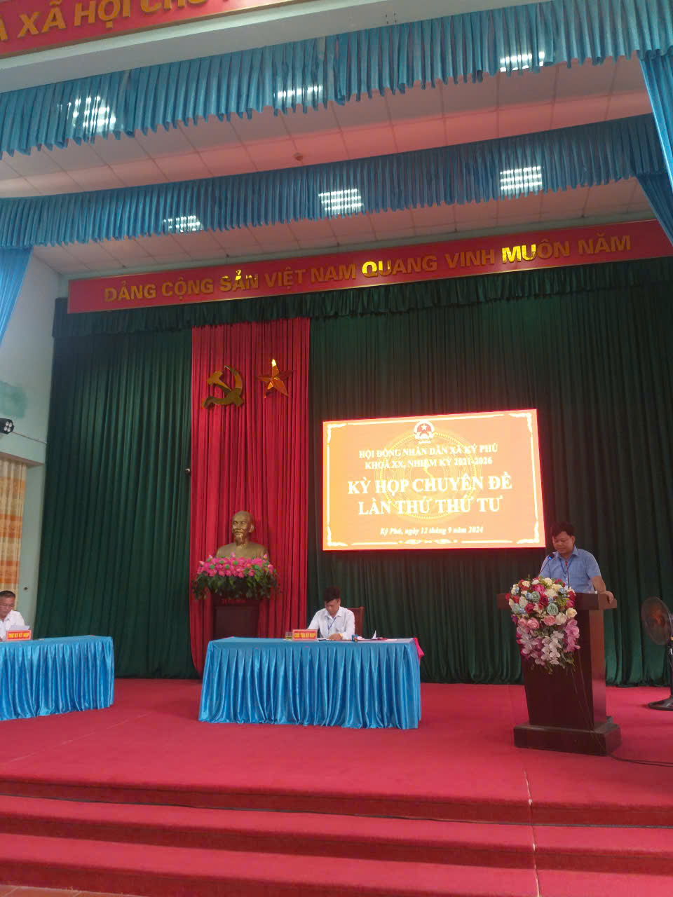 Chiều ngày 12/9/2024 tại hội trường nhà văn hóa xã, Hội đồng nhân dân xã Ký Phú khóa XX, nhiệm kỳ 2021-2026 tổ chức kỳ họp chuyên đề lần thứ tư với nội dung cụ thể nhưu sau: